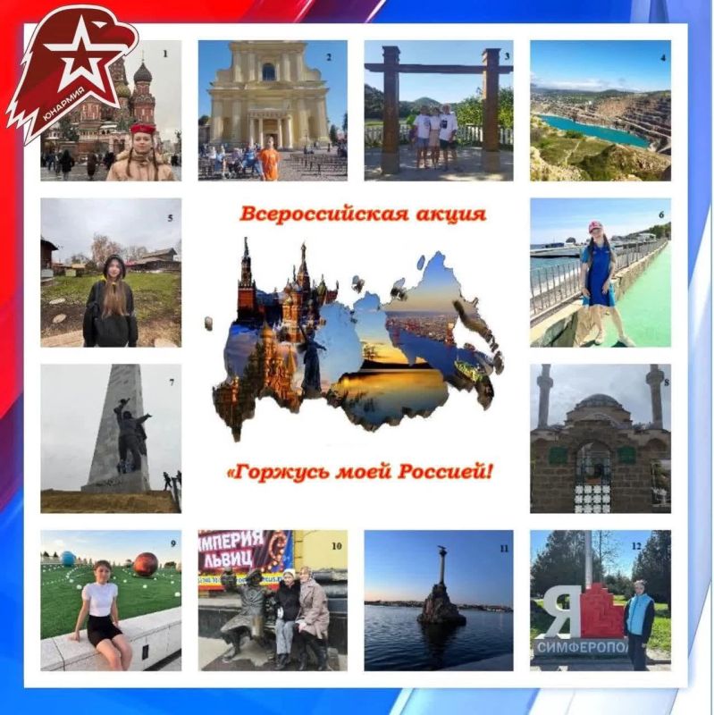 Россия страна с богатейшей историей и разнообразием культур. Наши юнармейцы рассказали и показали величественные памятники архитектуры, природные чудеса и значимые событиях, которые формировали нашу страну на протяжении веков.