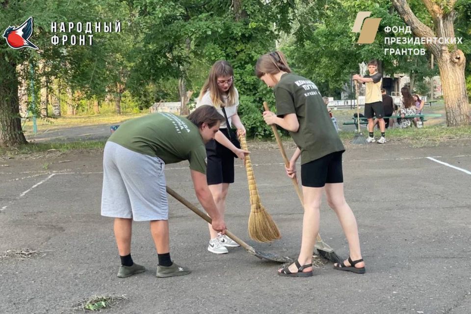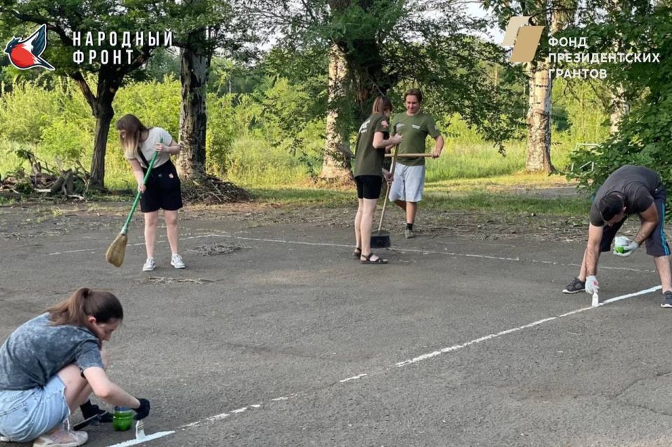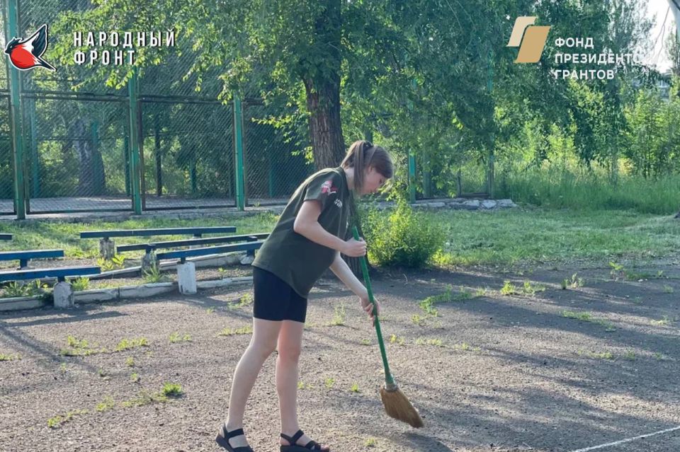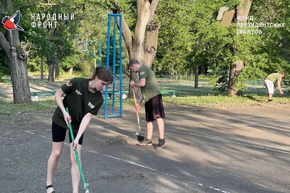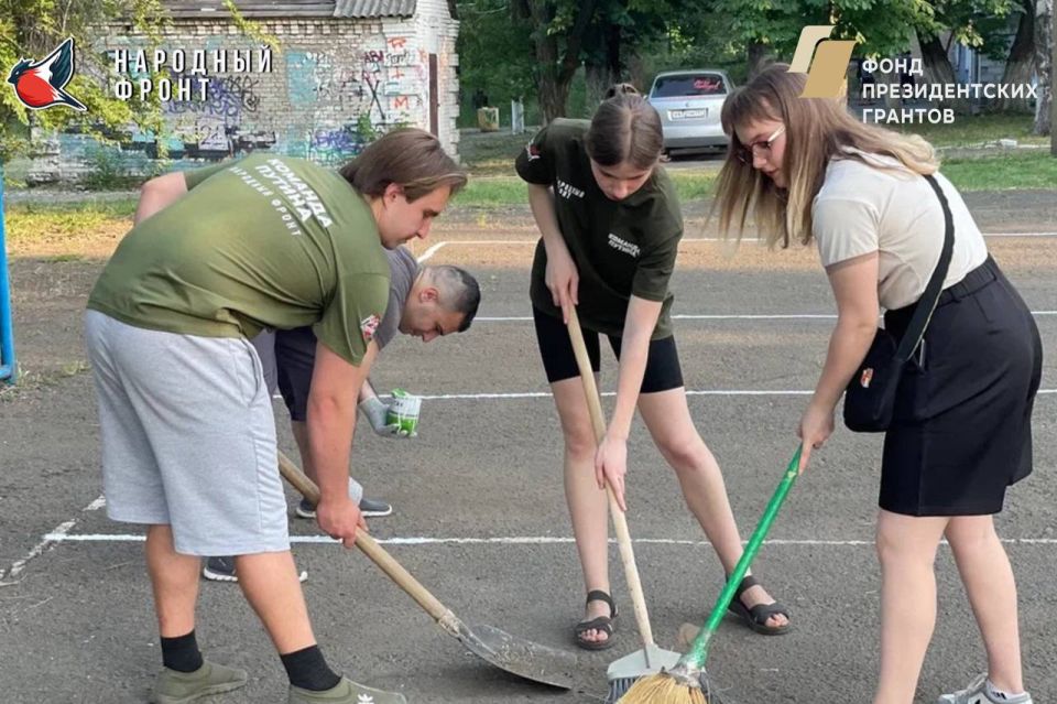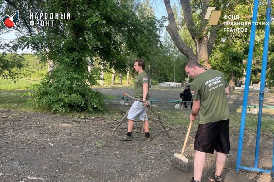 Участники Молодёжки Народного фронта ДНР организовали субботник на волейбольной площадке.