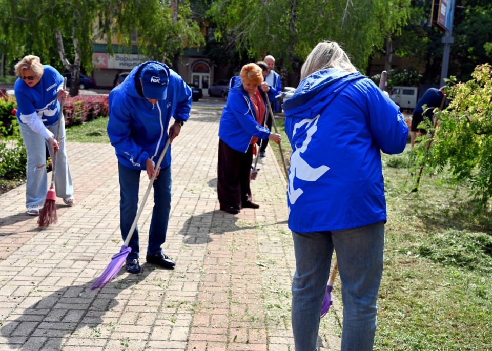В рамках акции участники: привели в порядок газоны, цветники и подмели пешеходные дорожки на проспекте Панфилова.