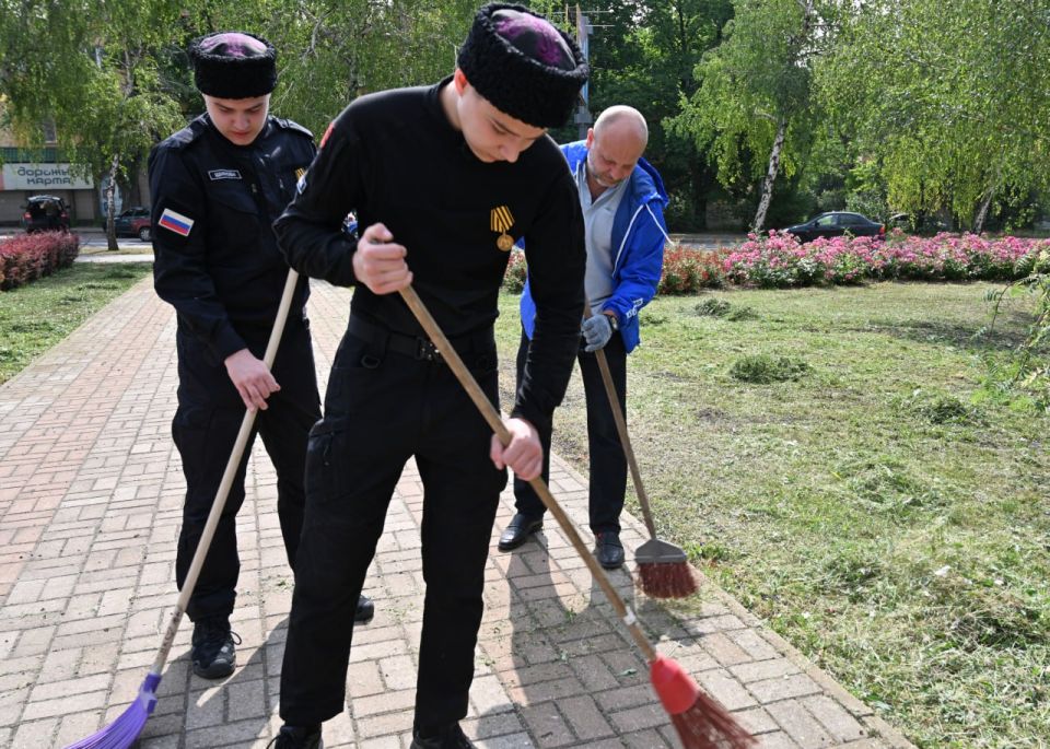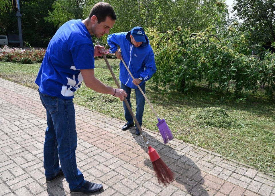Сотрудники Управы Куйбышевского внутригородского района вместе с депутатами Донецкого городского совета Дмитрием Пефтеевым и Сергеем Остапенко, активистами Молодёжного казачьего отряда «Карачун» и специалистами "Зеленстроя" присоединился к акции "Чистый четверг".