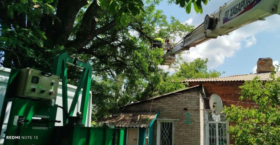 Бригада из Хабаровского края помогла жителям Дебальцево с опиловкой деревьев