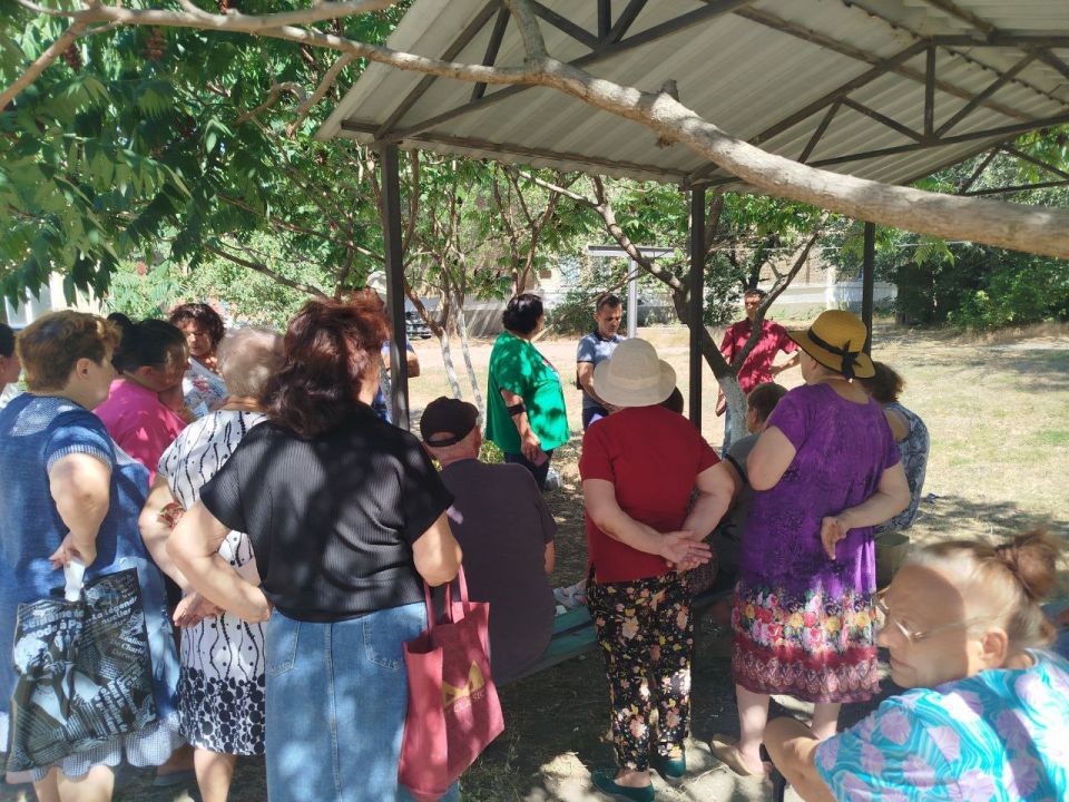 В начале встречи Михаил Святославович рассказал жителям, о поручениях и инициативах Главы Донецкой Народной Республики Дениса Пушилина: