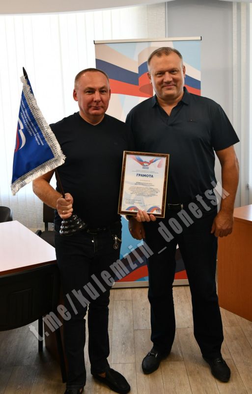 Вручил переходящее Знамя Донецкого городского местного отделения партии «Единая Россия» активу Управы Будённовского внутригородского района.