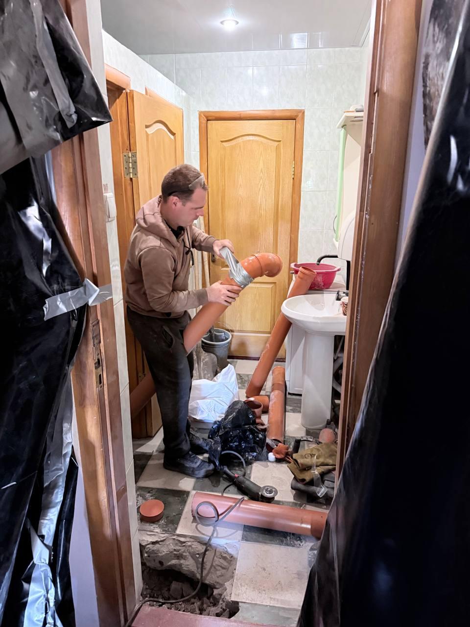 «Мы проложили 14 метров новых полипропиленовых труб и запустили систему водоотведения», — отметил старший сотрудник аварийно-восстановительной бригады Александр Романчук.