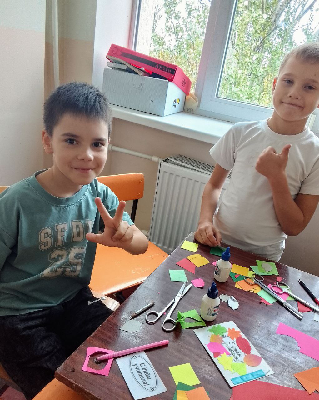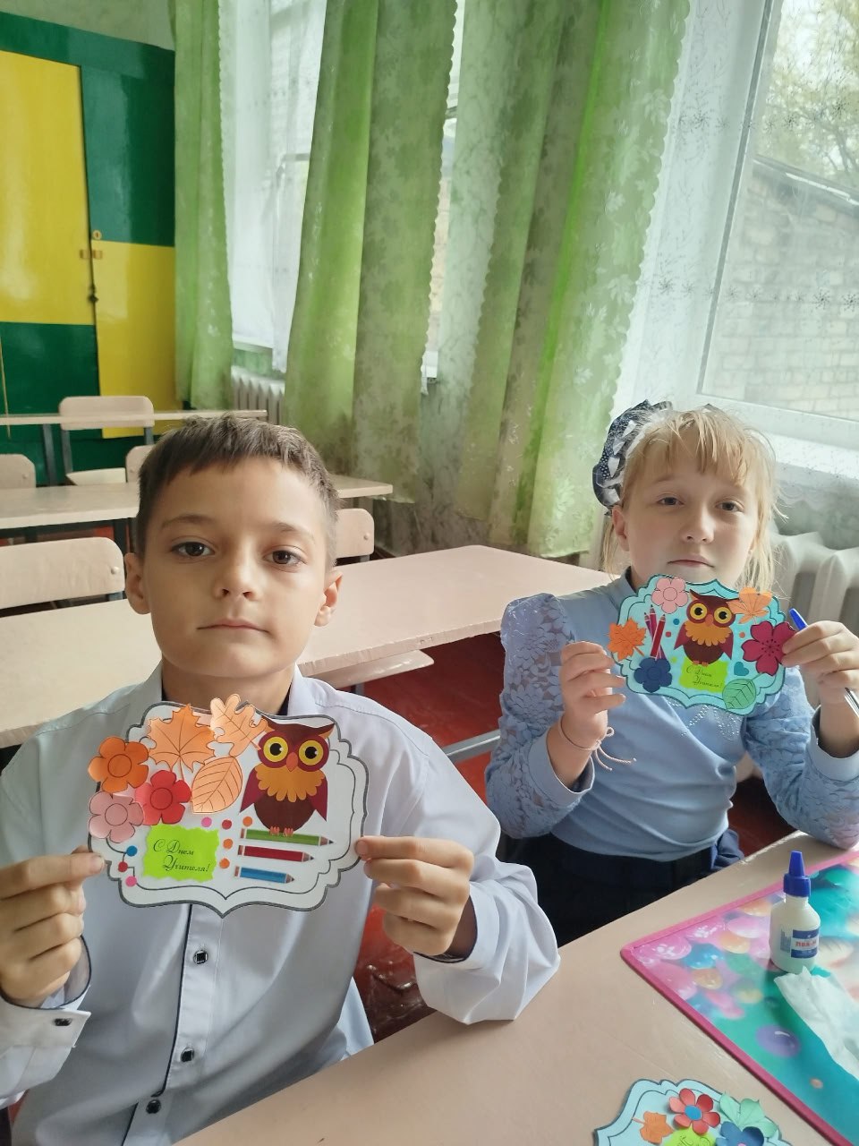 Ребята с большим удовольствием изготовили для своих учителей открытки, старательно написали теплые пожелания и поздравления с праздником.