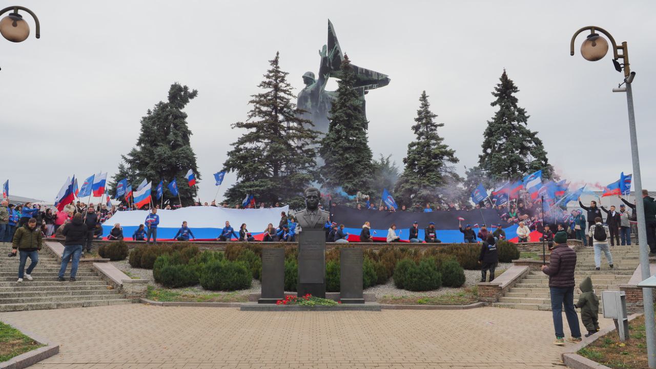 У памятника «Твоим освободителям, Донбасс» участники мероприятия почтили память военнослужащих и мирных жителей, с 2014 года ведущих борьбу за возвращение региона на историческую Родину.