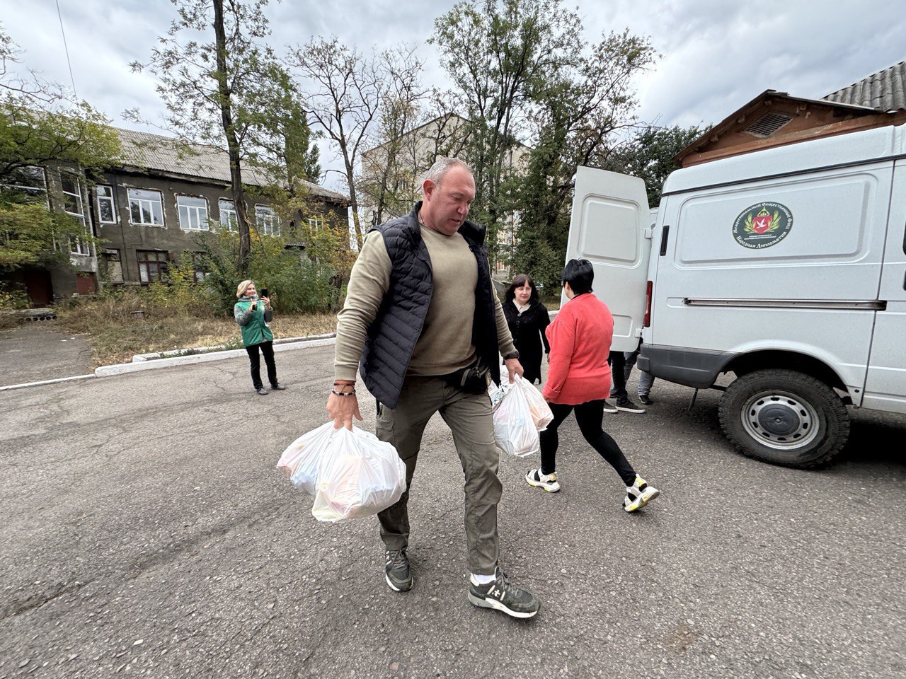 Депутаты Народного Совета Марина Каплянок, Денис Островский, Евгений Белашев вместе с представителями Благотворительного фонда «Народная Дипломатия» посетили прифронтовой Никитовский район города Горловки с гуманитарной миссией.