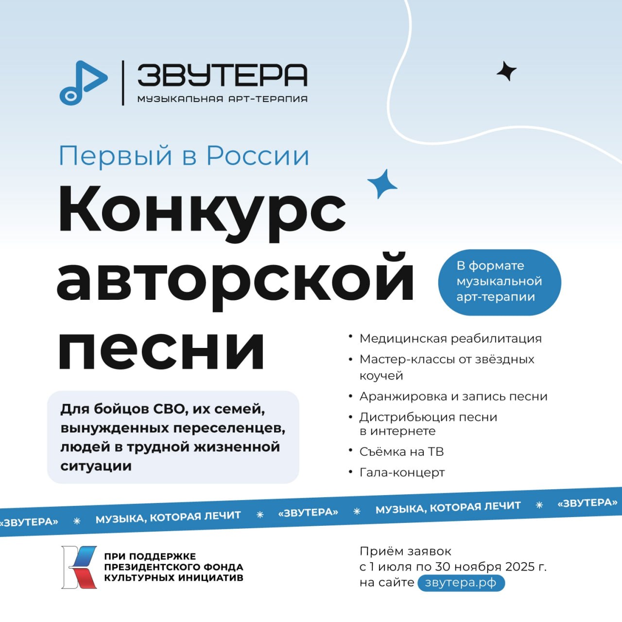 Открыт приём заявок на первый в России конкурс песен в формате музыкальной арт-терапии «Звутера»