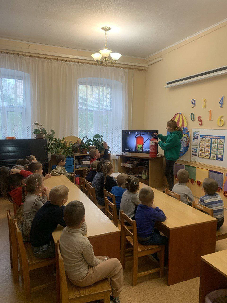 С дошкольниками были проведены беседы: «Профессия спасатель»; «Гражданская оборона – умей себя защищать». Воспитанникам была показана презентация об основах безопасности жизнедеятельности.