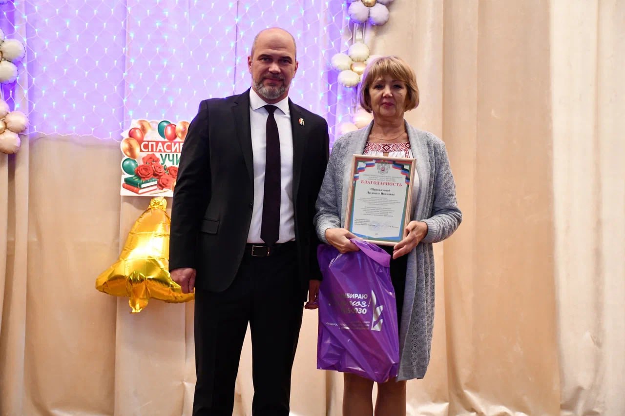 Обратился к присутствующим с тёплыми словами. Подчеркнул, что именно учитель открывает перед ребёнком дорогу в будущее, воспитывает в детях любовь к Родине и уважение к традициям, помогает поверить в себя и достичь успеха.