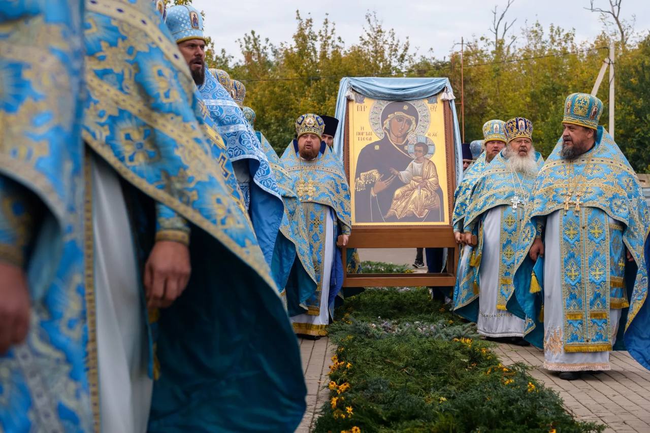 У стен Свято-Иверского монастыря вновь слышен колокольный звон — сюда после одиннадцати лет возвращена Донецкая Вратарница, главная святыня обители, расположенной рядом с руинами Донецкого аэропорта.