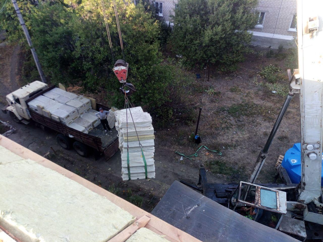 Специалисты региона-шефа ремонтируют крышу дома на улице Патона: приступили к устройству уклонообразующего слоя из керамзита и монтажу утеплителя.