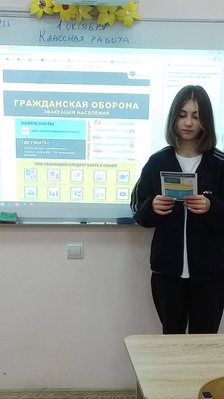 Учитель ОБЖ Першина М.П. провела беседу о порядке действий при получении сигнала оповещения «ВНИМАНИЕ ВСЕМ!»
