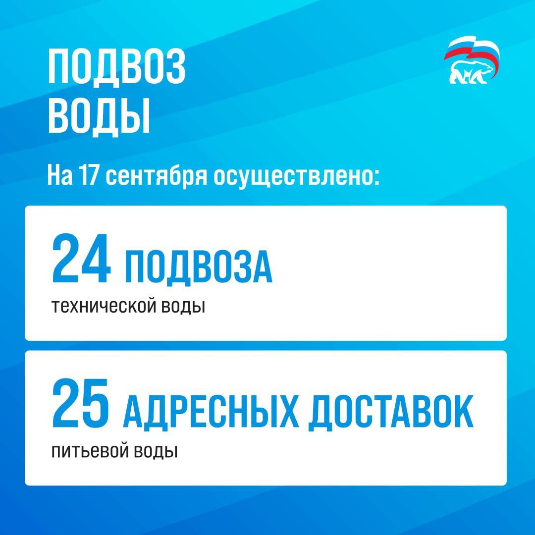 Почти полсотни автоцистерн с технической и питьевой водой направили людям. Эту работу проводим совместно с администрациями муниципалитетов, нашими депутатами и волонтерами.