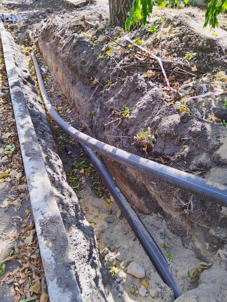 «На объекте работают три специалиста и одна единица техники. Большая часть запланированного объема уже выполнена — укладываем последние метры труб и завершаем монтаж колодцев»