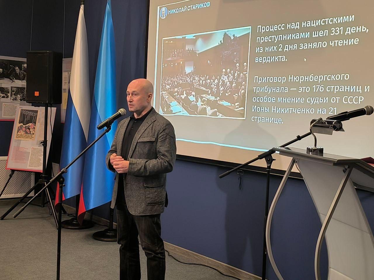 Первая часть выставки посвящена подготовке к Нюрнбергскому процессу. Далее экспозиция рассказывает о советской делегации на этом историческом событии и роли СССР в наказании гитлеровских (и не только) палачей и их пособников.