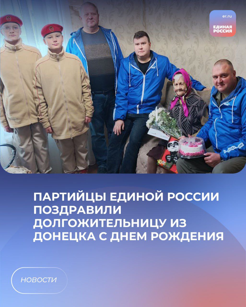 В праздничный день в гости к юбилярше с поздравительным визитом пришла целая делегация: партийцы Единой России – депутат Народного Совета ДНР Александр Черников и депутат Донецкого горсовета ДНР Михаил Рыбаков, а также юнармейцы клуба «Патриоты Донбасса» школы № 83 им. Г. И. Баланова. Добрые пожелания, тёплые слова, подарки и цветы искренне порадовали именинницу. А невероятно приятным сюрпризом стало именное поздравительное письмо от Президента России Владимира Путина, которое гости передали Вере Павловне.