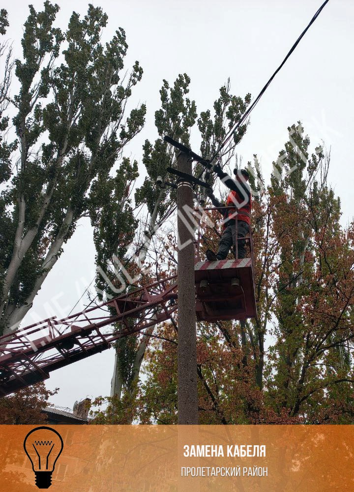 Специалисты предприятия «Донецкгорсвет» продолжают работу по обслуживанию, монтажу и ремонту инженерных сетей, обеспечивающих наружное освещение.