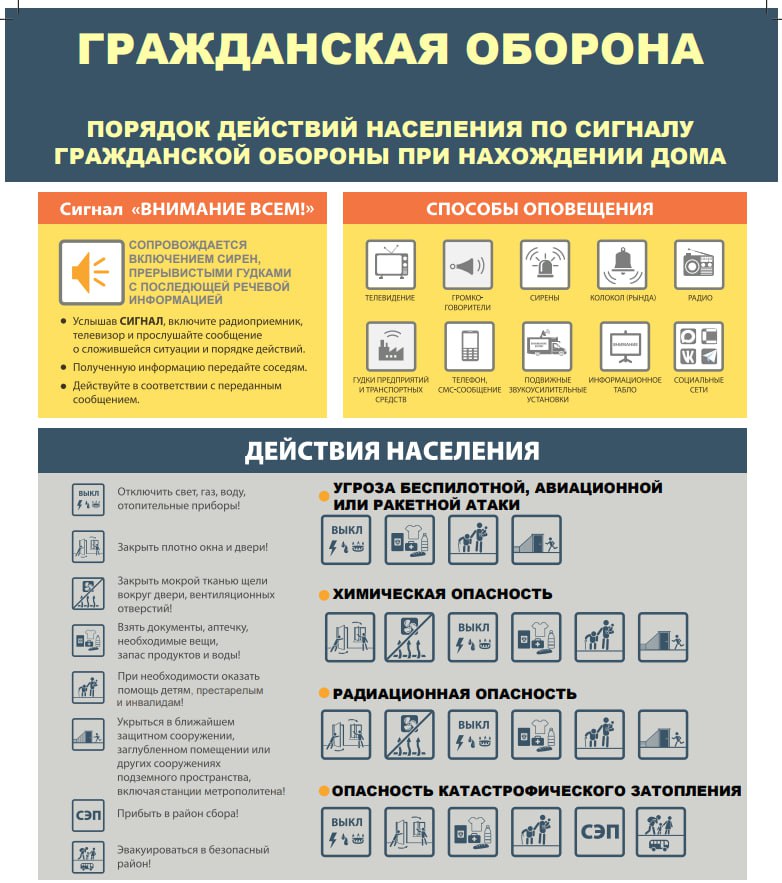 Отдел по вопросам гражданской обороны и чрезвычайных ситуаций Администрации г.о. Мариуполь напоминает порядок действий населения при сигнале гражданской обороны, а также правила поведения при беспилотной, авиационной или ракетной атаке.
