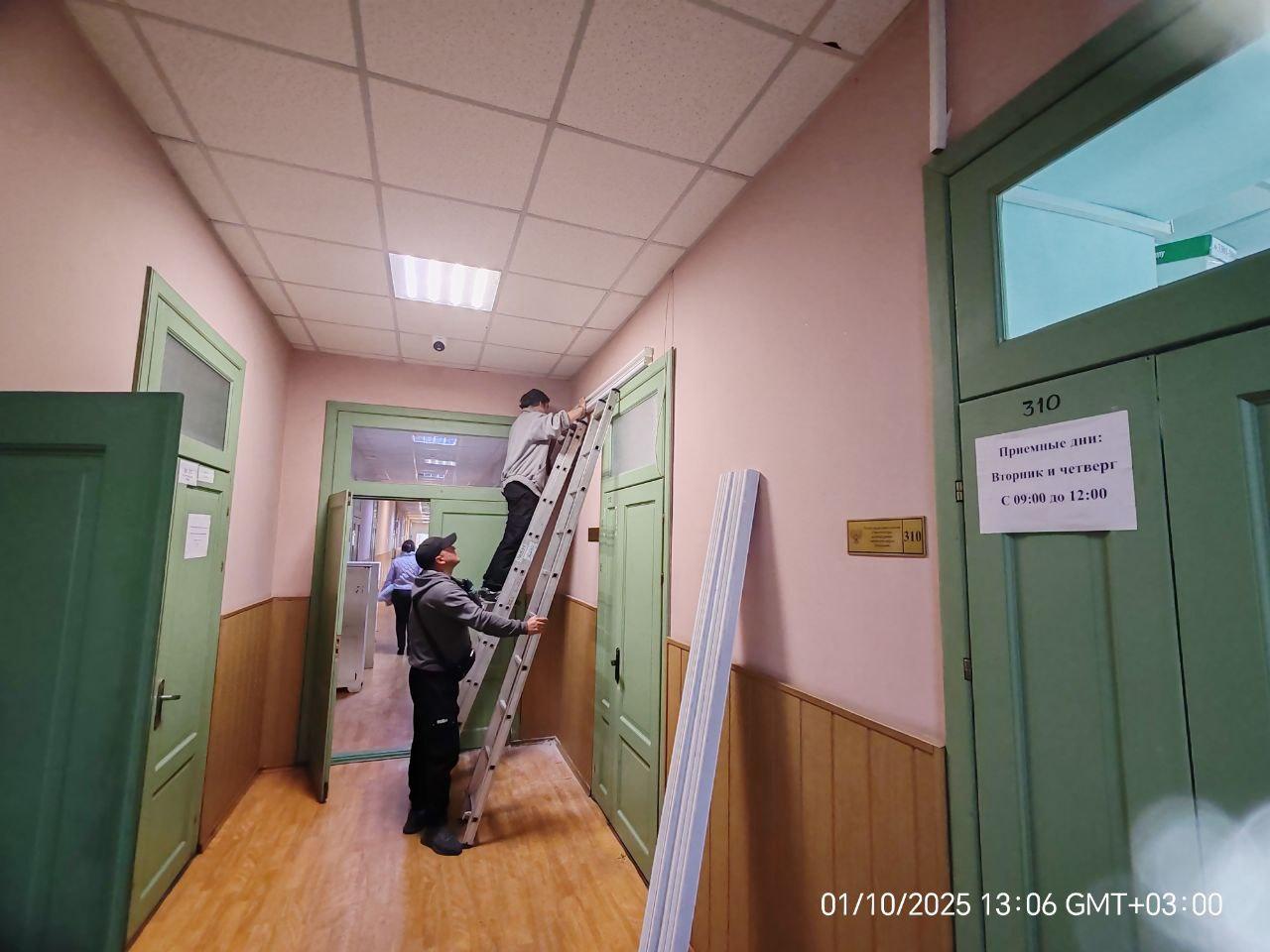 В администрации Дебальцево регион-шеф устанавливает кабеленесущие системы для локально-вычислительной сети.