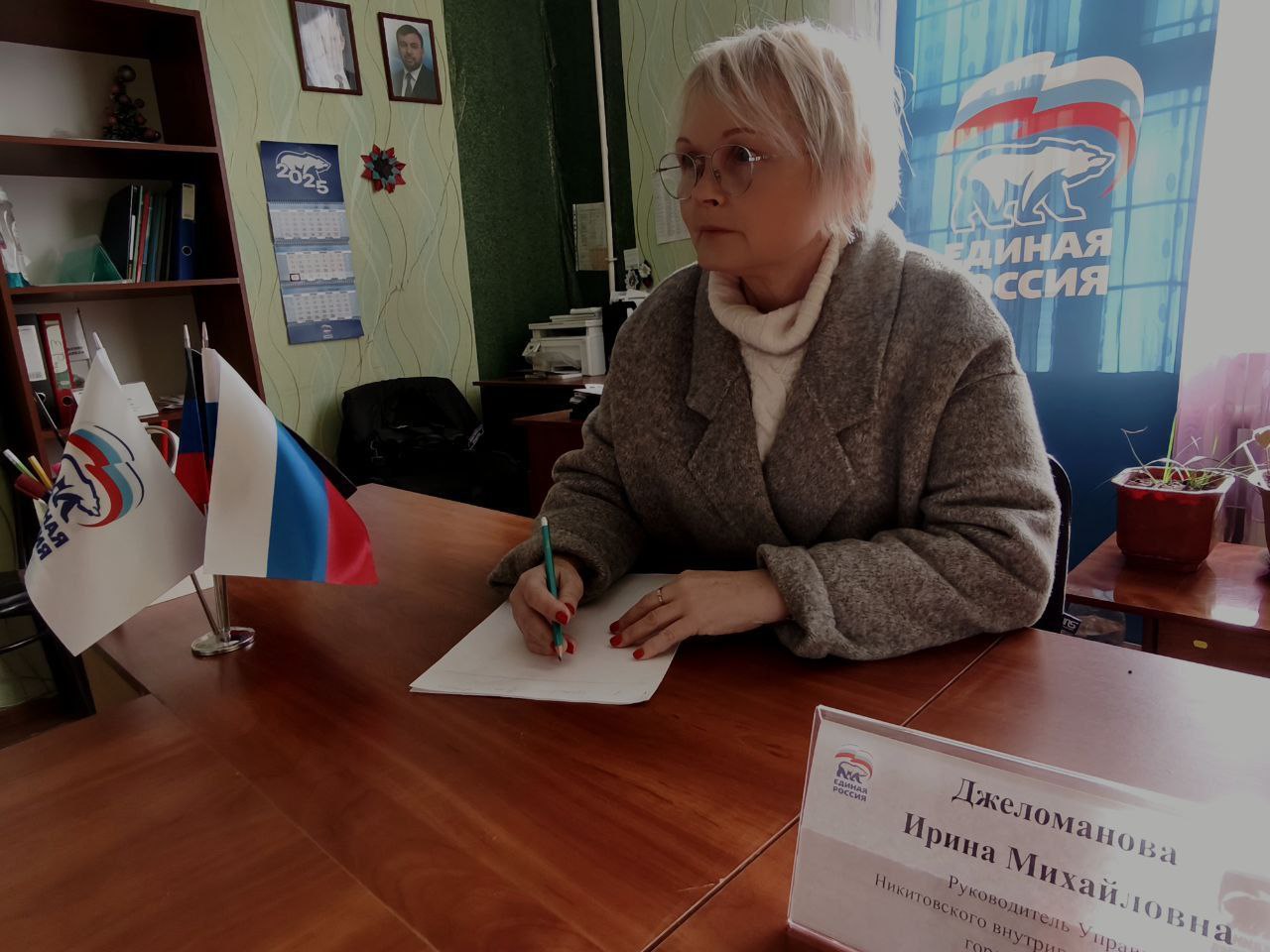 Руководитель Управы Никитовского внутригородского района города Горловка Ирина Джеломанова провела выездной прием граждан в общественной приемной Председателя партии «Единая Россия» Дмитрия Медведева