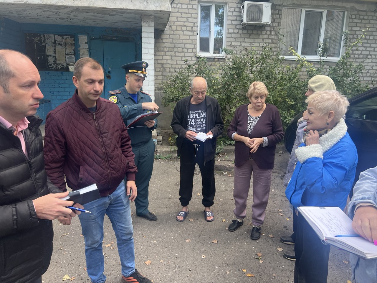 По поручению Главы ДНР Дениса Пушилин 03.10.2025 по адресу: г. Донецк, ул.Танкистов,1 состоялась встреча с жителями, на которой присутствовали заместитель руководителя Управы Ленинского внутригородского района Анатолий Разумов, мастер участка №3 Ленинского района Донецкого филиала Единого регионального фонда по управлению МКД на территории ДНР Евгений Пискун,инспектор отделения НД и ПР Ленинского района г.Донецка МЧС России по ДНР Роман Рыбаков.