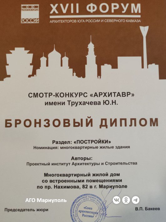Как отметила начальник управления градостроительства и архитектуры АГО Мариуполь Наталья Клочкова, две высокие награды из более 160 представленных на конкурс проектов – достойное признание заслуг архитекторов, которые работают над преображением Мариуполя в современный комфортный российский город.