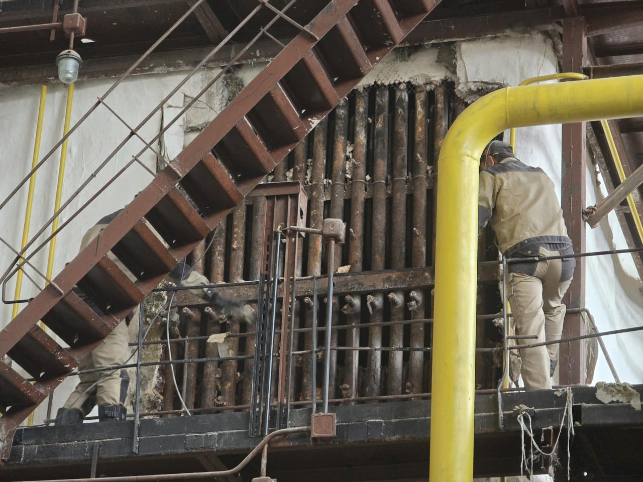 Сейчас произведен частичный демонтаж обмуровки котла ПТВМ-30М, проводится демонтаж элементов нагрева старых конвективных полусекций.