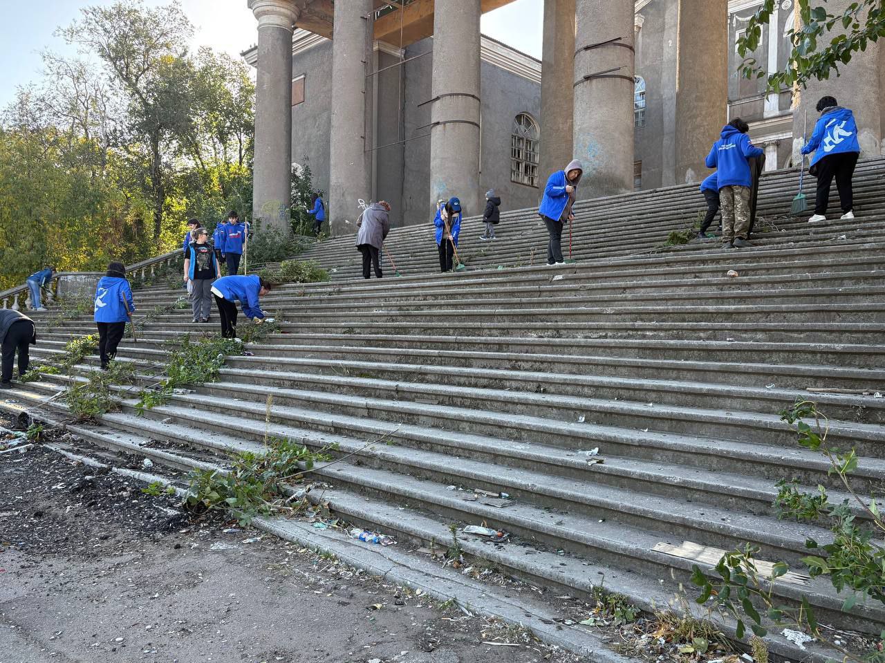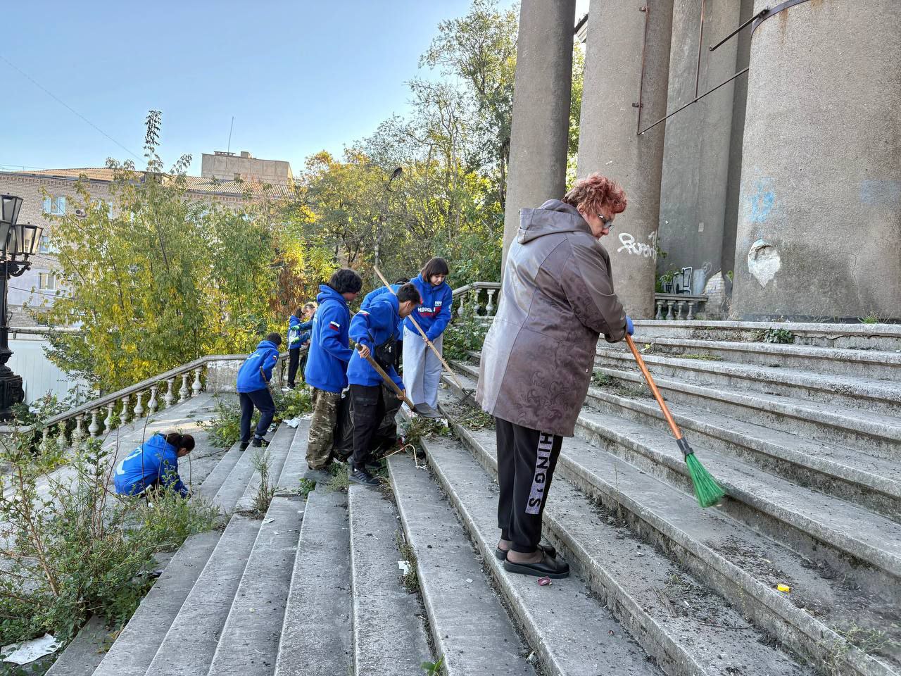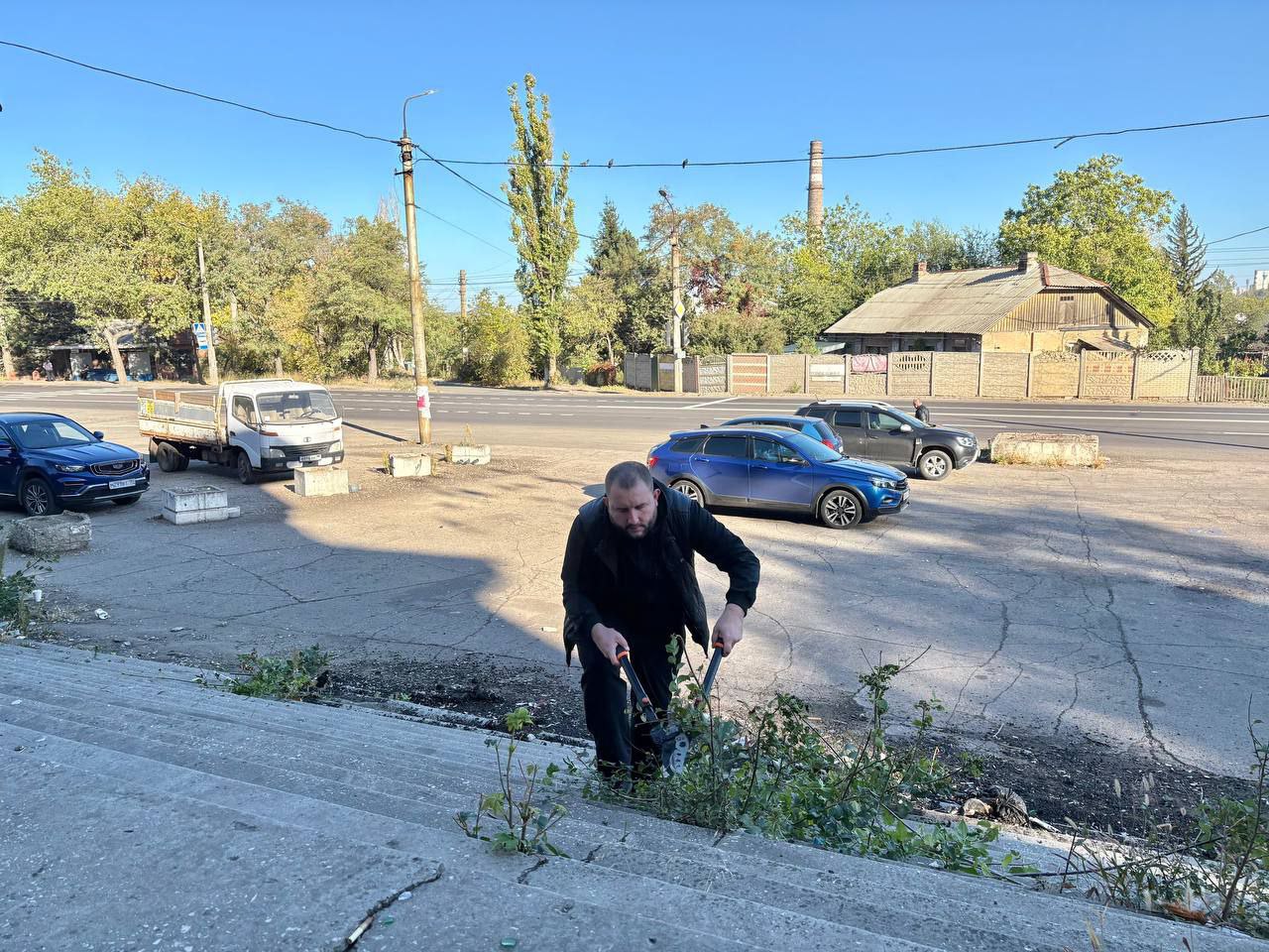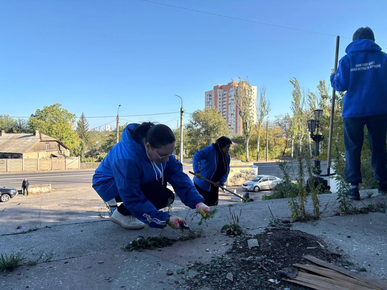 Сотрудники Управы Ленинского внутригородского района Администрации городского округа Донецк, заместитель главы администрации городского округа Донецк Светлана Везденко, представители Ленинского штаба МГЕР ДНР, жители района, а также активисты Всероссийской политической партии «Единая Россия» выполнили работы по уборке территории от случайного мусора, сухих веток и поросли.