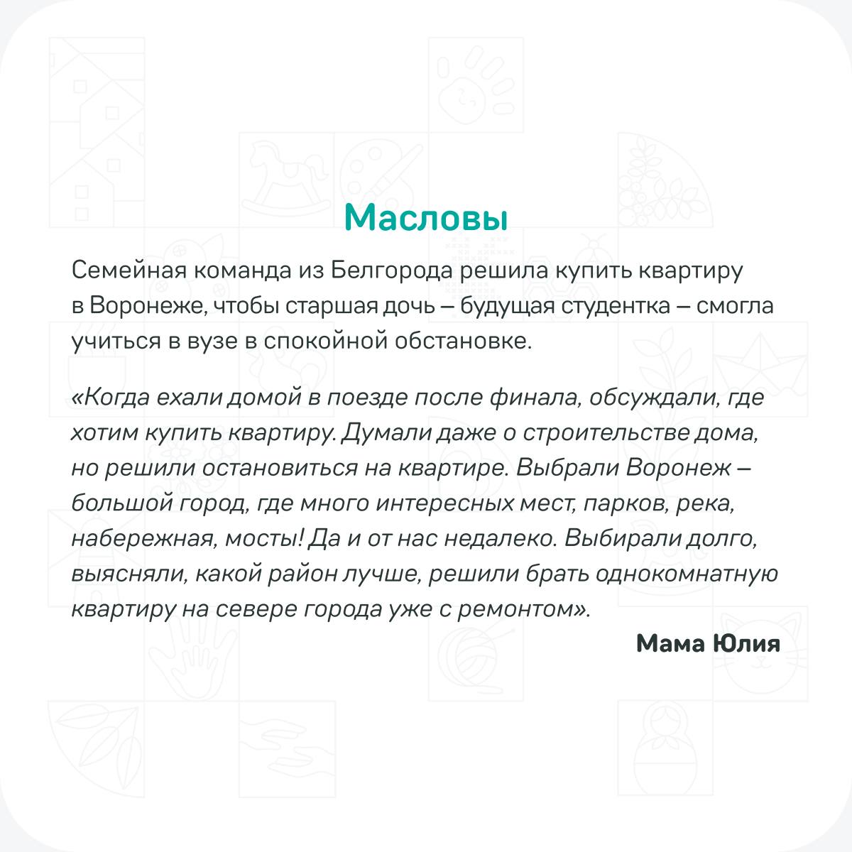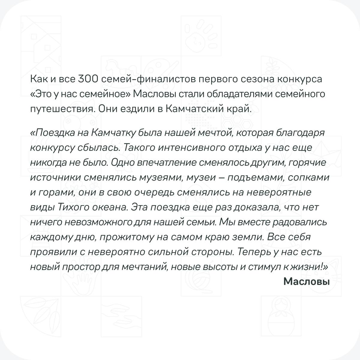 Иногда одна победа может исполнить сразу несколько семейных мечтаний! История команды Масловых из Белгорода — лучшее тому подтверждение. Благодаря конкурсу «Это у нас семейное» они не только сплотились, но и смогли построить будущее для своей дочери, побывать на краю земли, научиться работать как одна команда и обрести друзей по всей стране