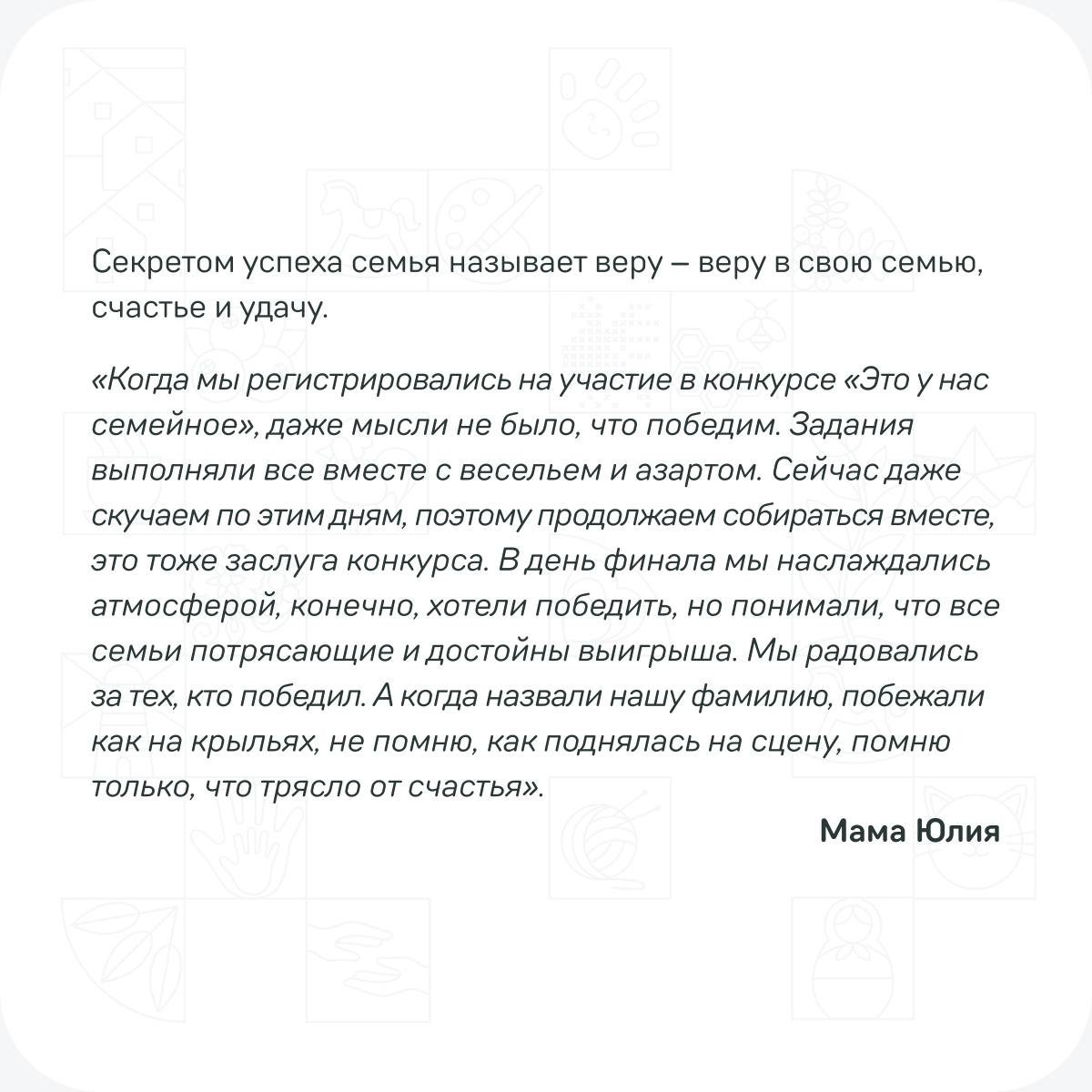 Секрет успеха победителей первого сезона самого народного проекта президентской платформы «Россия — страна возможностей» — вера в свою семью, счастье и удачу