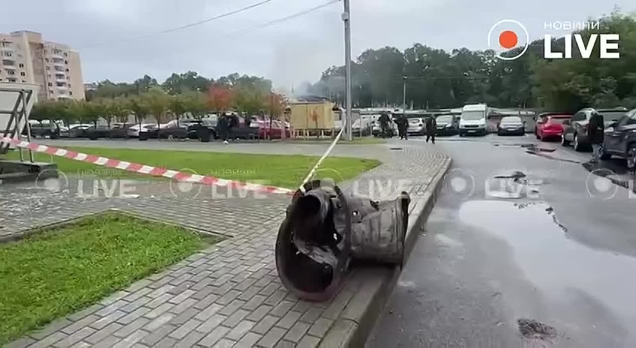 Скорее всего снаряд сбит ПВО и не долетел до цели. А может это и есть часть боекомплекта ракеты ПВО...Кто сейчас разберёт...
