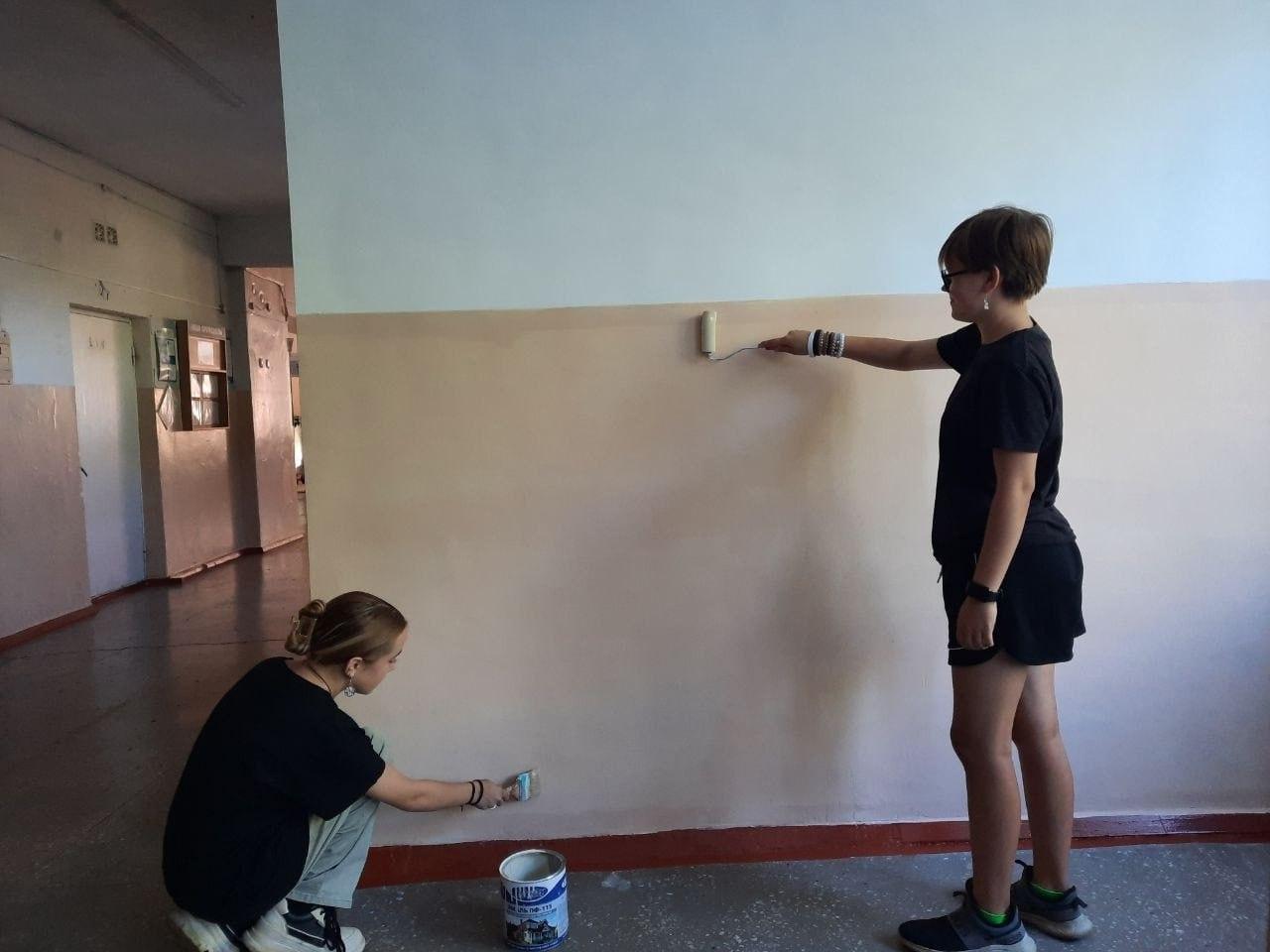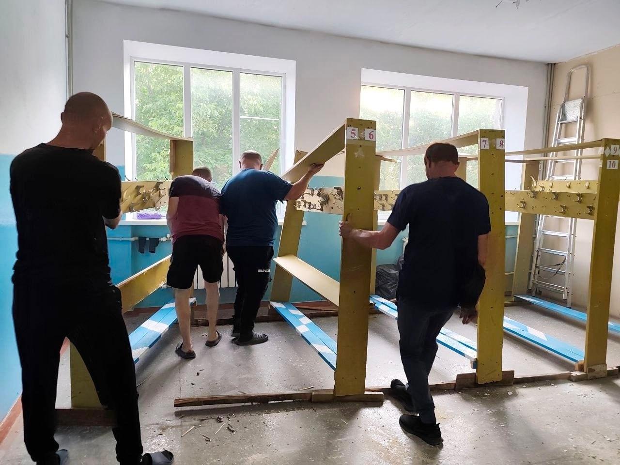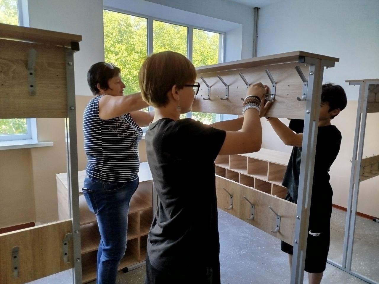 Ученики, педагоги и родители демонтировали старые конструкции, покрасили стены и установили вешалки для верхней одежды.