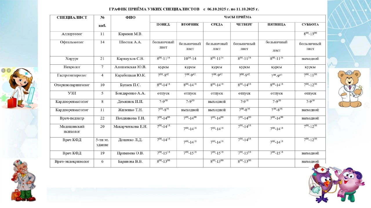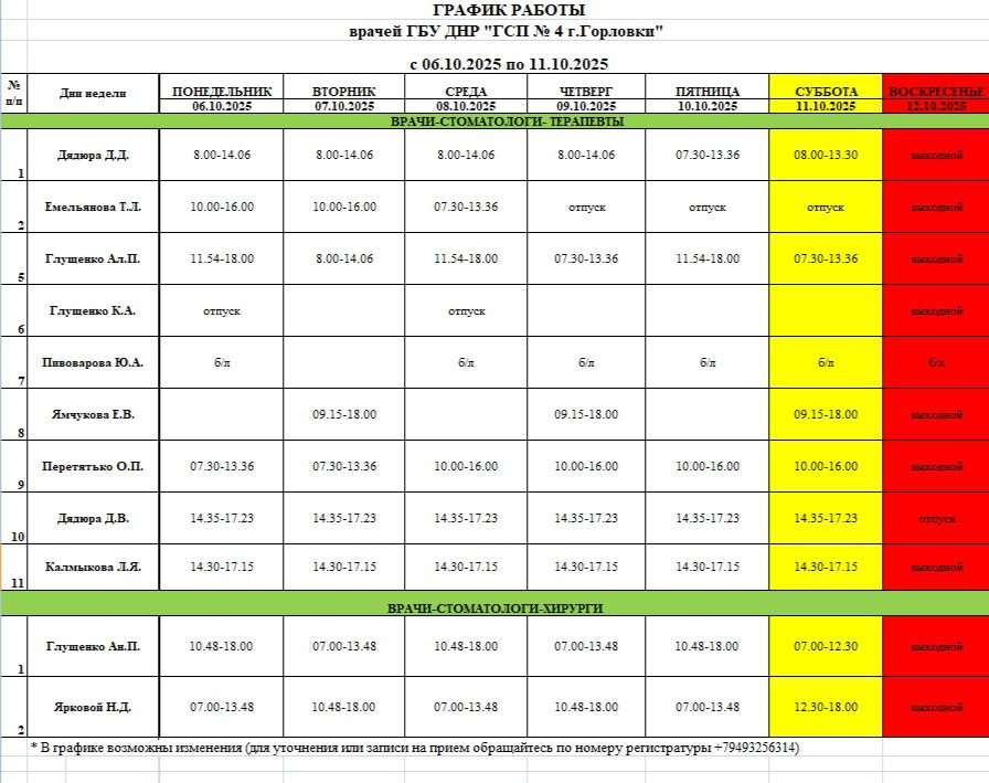 Иван Приходько: График работы специалистов ГБУ ДНР «ЦПМСП № 1 г. Горловки», ГБУ ДНР «ЦПМСП № 2 г. Горловки», ГБУ ДНР «ГСП № 4 г.Горловки», ГБУ ДНР «ЦОМД г. Горловки»