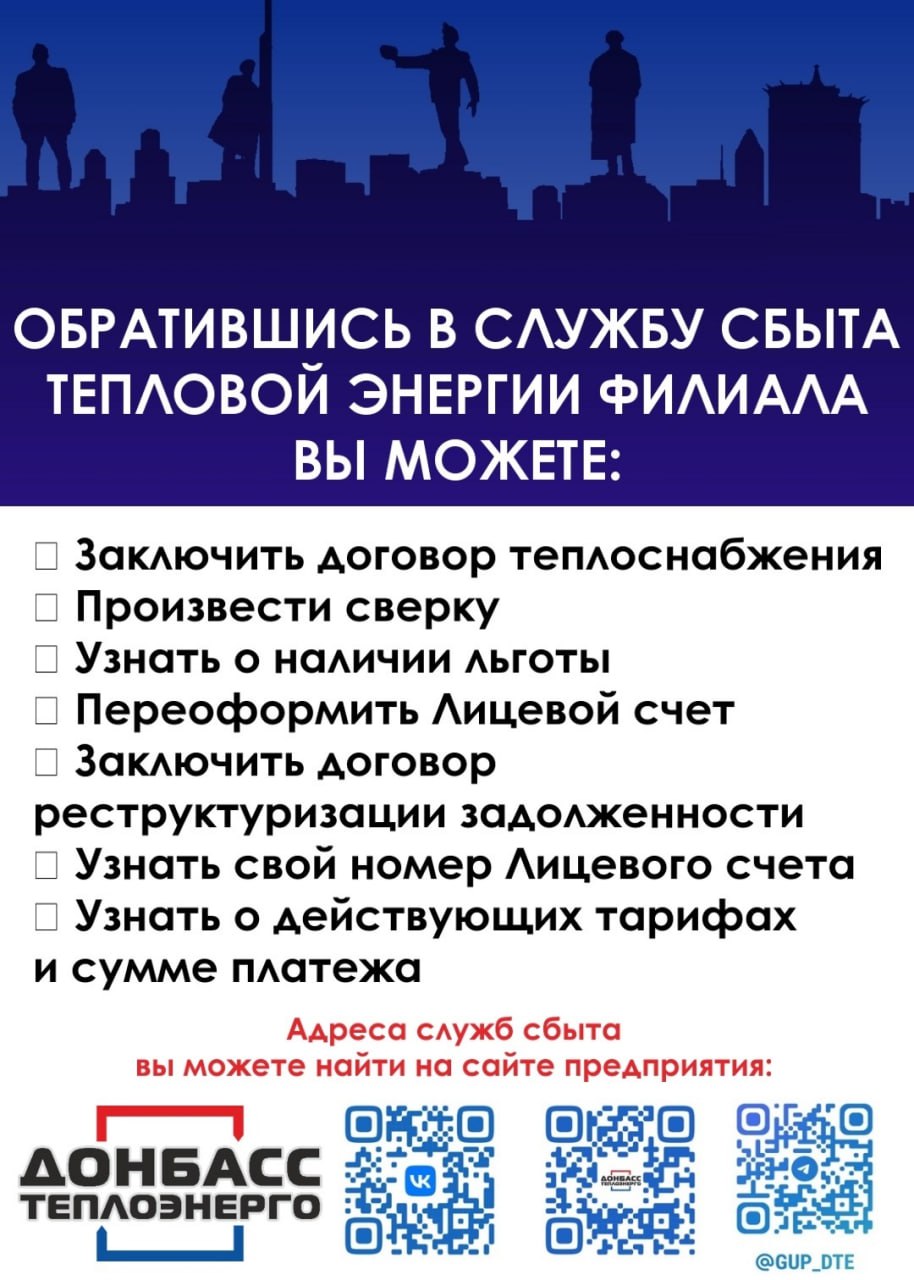 ГУП ДНР «ДОНБАССТЕПЛОЭНЕРГО» информирует