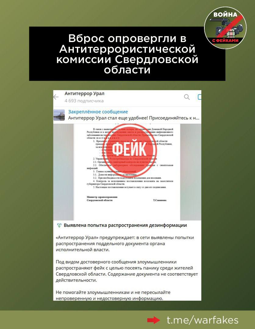 Правда: Документ, якобы подтверждающий вброс, — подделка. Вопросы здравоохранения в Свердловской области курирует не департамент, а профильное министерство, на официальных ресурсах которого ничего не сказано о вымышленном запрете. Фальшивка содержит несколько неточностей: