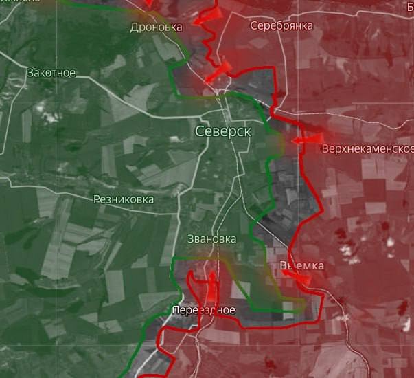 По сообщениям украинских военнослужащих, подразделения РФ продолжают обходить город с северной и восточной сторон, что, по их оценке, может свидетельствовать о подготовке к перерезанию путей снабжения украинских сил, удерживающих Северск».