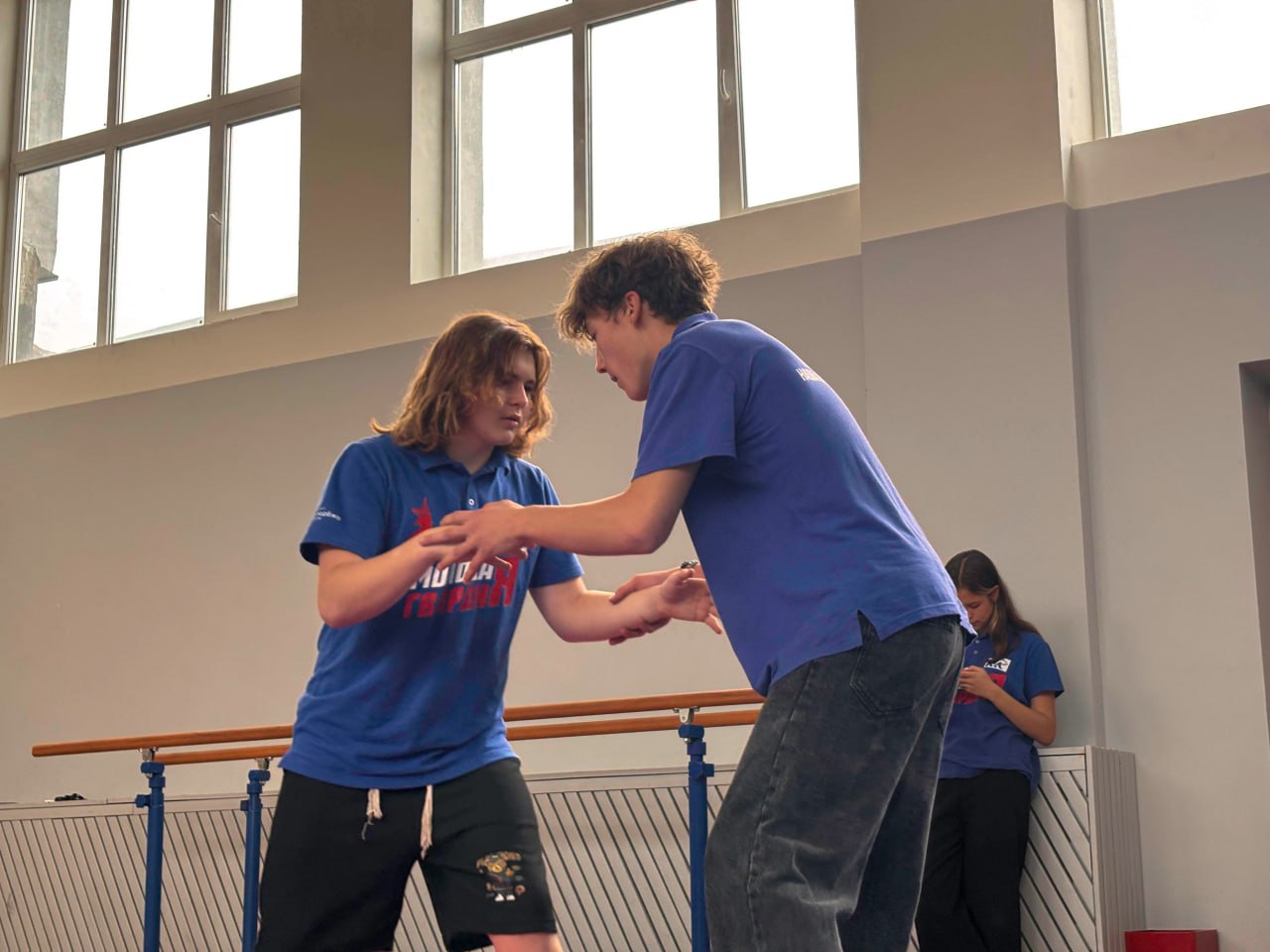 В Многопрофильном лицее №5 прошла тренировка для молодёжи, где участники разных возрастных групп отработали базовые приёмы и освоили новые элементы техники борьбы.