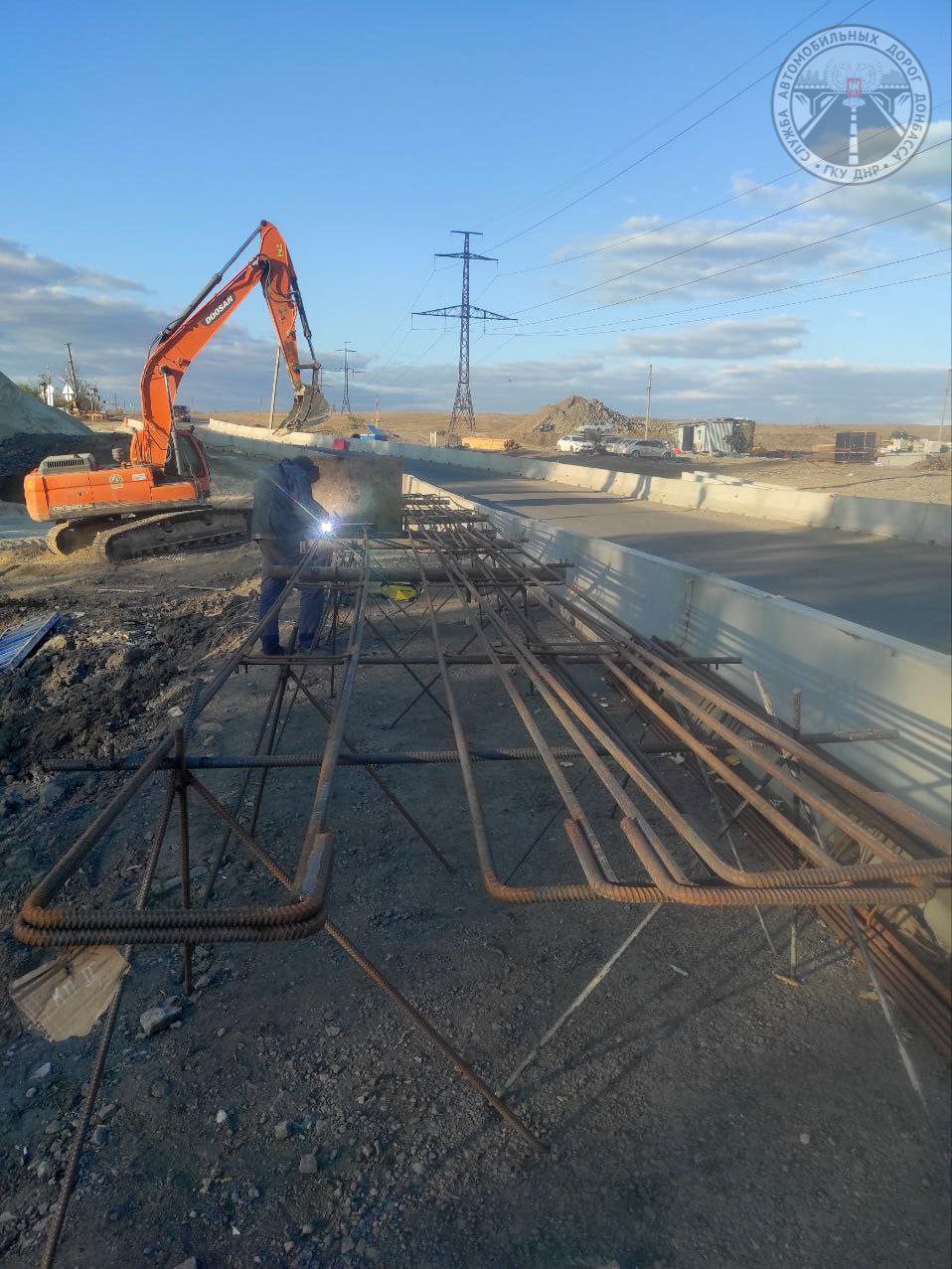 На сегодняшний день на объекте выполнено разминирование зоны производства работ, демонтаж существующего искусственного сооружения, устройство временной объездной дороги, произведена разработка котлованов для устройства новых опор, изготовлена индивидуальная опалубка и арматурные каркасы для устройства опор и устройство опоры.