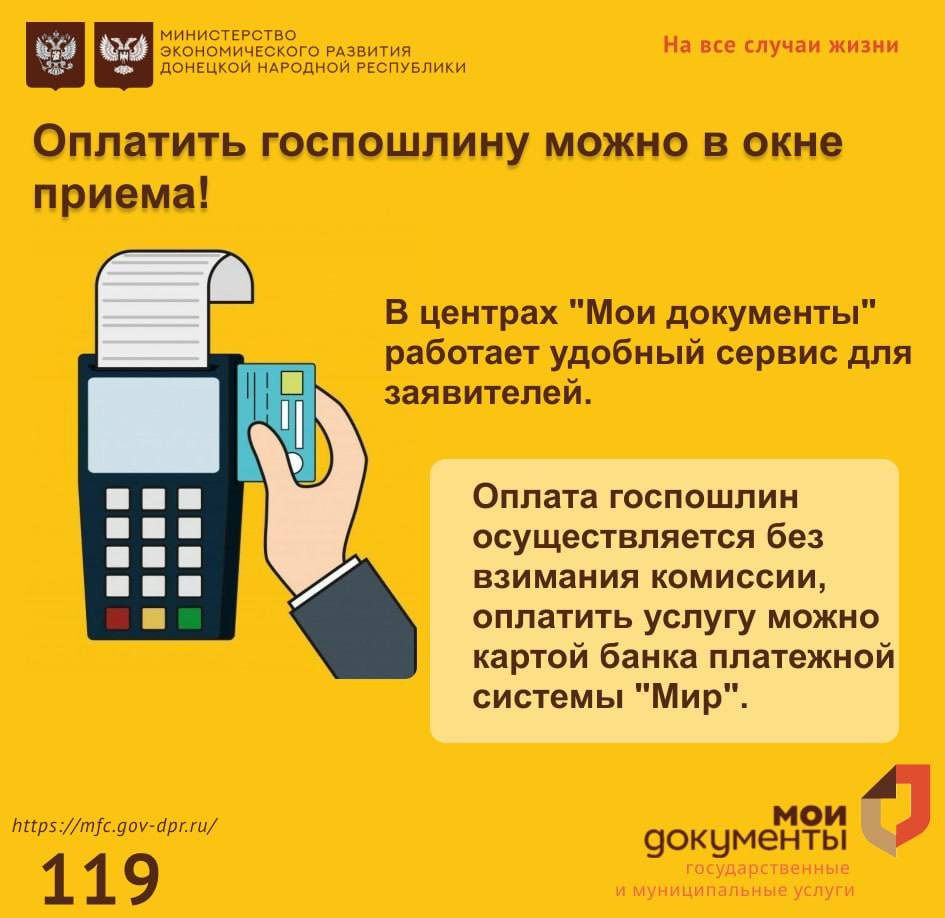 В центрах "Мои документы" оплатить госпошлину можно в окне приема.