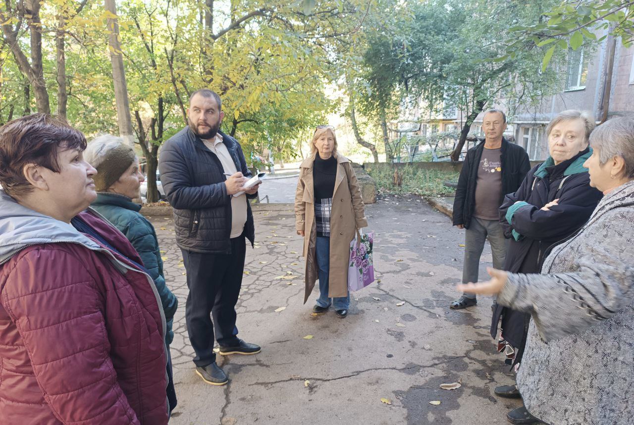 По поручению Главы ДНР Дениса Пушилина 07.10.2025 по адресу: г. Донецк, ул.Речная,50 состоялась встреча с жителями района, на которой присутствовал заместитель руководителя Управы Ленинского внутригородского района Александр Поддубный.
