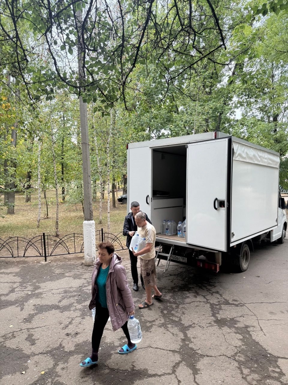 7 октября 2025 года депутаты Горловского городского совета от фракции «Единая Россия» – София Потапова, Павел Калфакчиян, Инает Розводова, Алексей Костин развезли воду и посетили места подвоза воды.