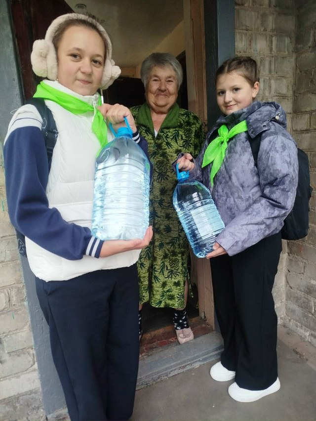 Волонтёрский отряд школы №29 городского округа Енакиево доставил питьевую воду председателю совета ветеранов Копыловой Алле Григорьевне.