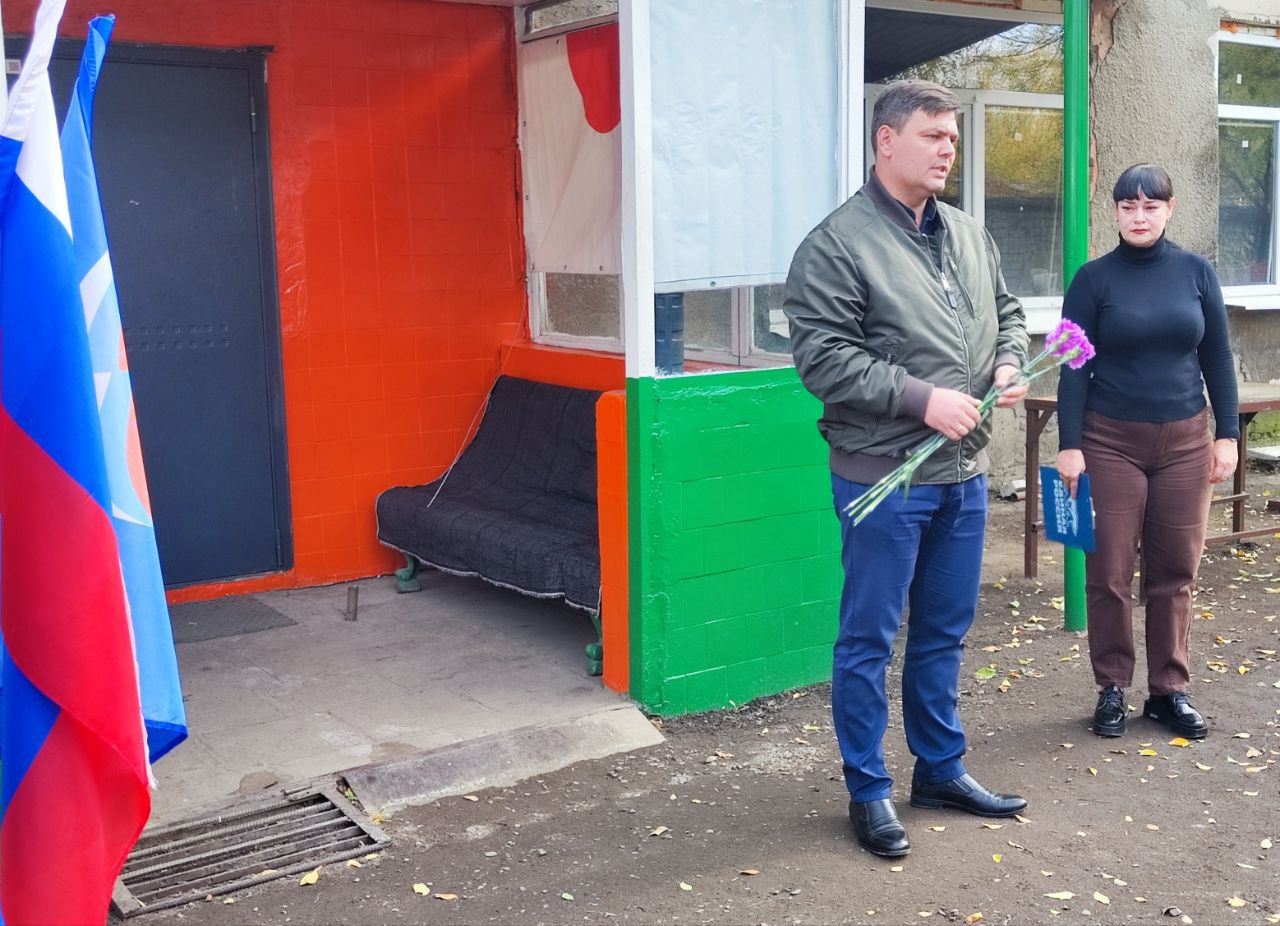 Мемориальная табличка была установлена на территории МУП администрации города Тореза "Благоустройство", где Николай Васильевич трудился в качестве рабочего зеленого строительства.