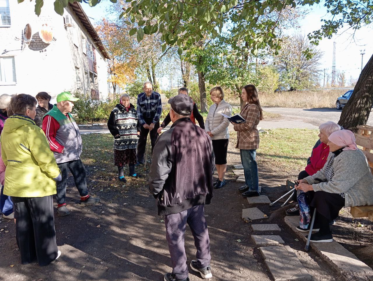 7 октября в рамках поручения главы Донецкой Народной Республики Дениса Владимировича Пушилина о постоянном диалоге с населением начальником Углегорского территориального отдела управления по обеспечению деятельности территорий администрации городского округа Енакиево Натальей Лобановской проведена встреча с жителями г. Углегорска по адресу: ул. Постышева, д. 21. На встрече также присутствовал мастер МУП «ЖРУ № 6».