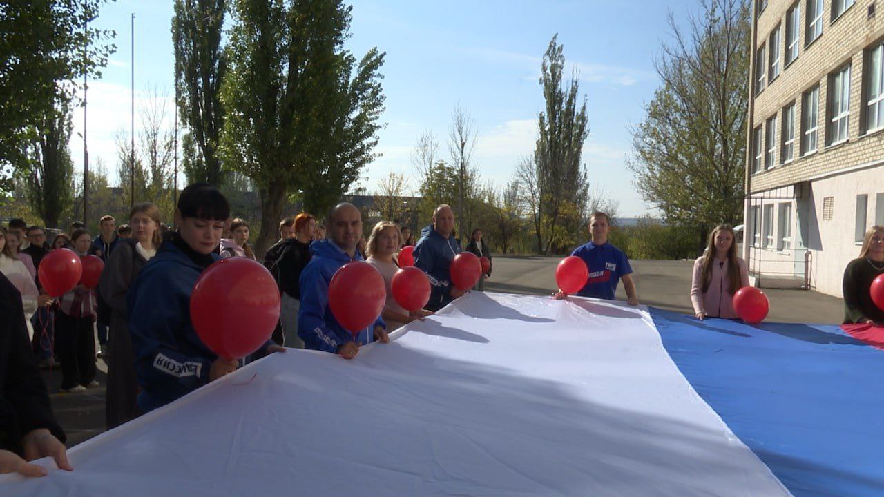 С воздушными шарами в руках участники выстроили фамилию Президента, а затем торжественно развернули большой государственный флаг России. Завершился флешмоб красочным моментом – в небо взмыли десятки шаров как символ праздничных пожеланий в адрес Президента.