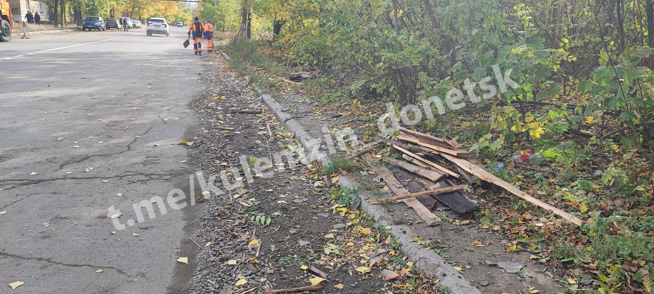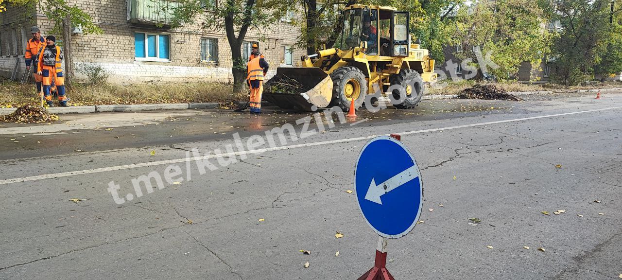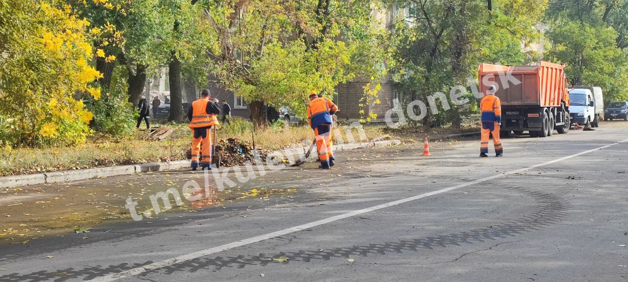 С самого утра сотрудники предприятия «Дорожное ремонтно-строительное управление» устраняют последствия обстрела со стороны украинских националистов Кировского района.