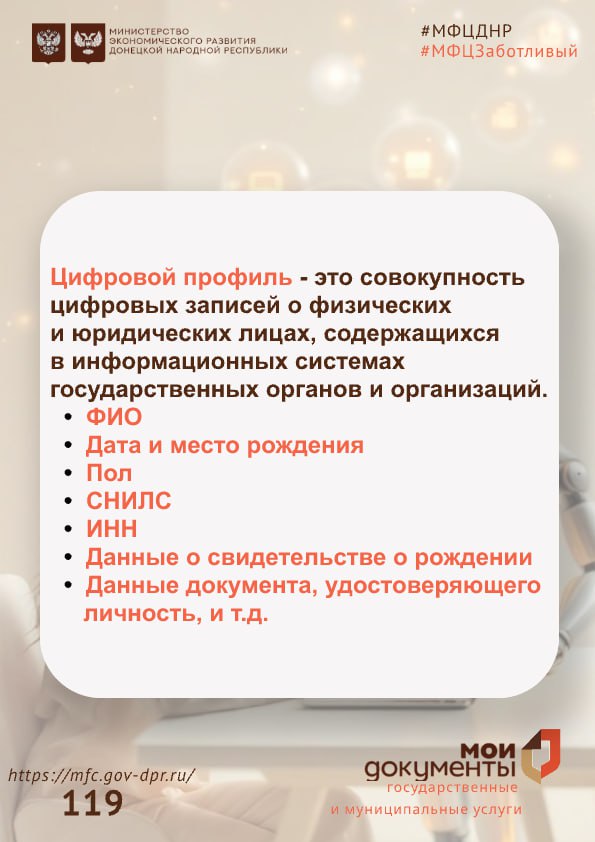 Цифровой профиль гражданина (ЦПГ)— это совокупность цифровых записей о человеке, содержащихся в информационных системах государственных органов и организаций.