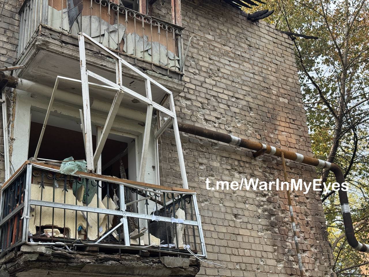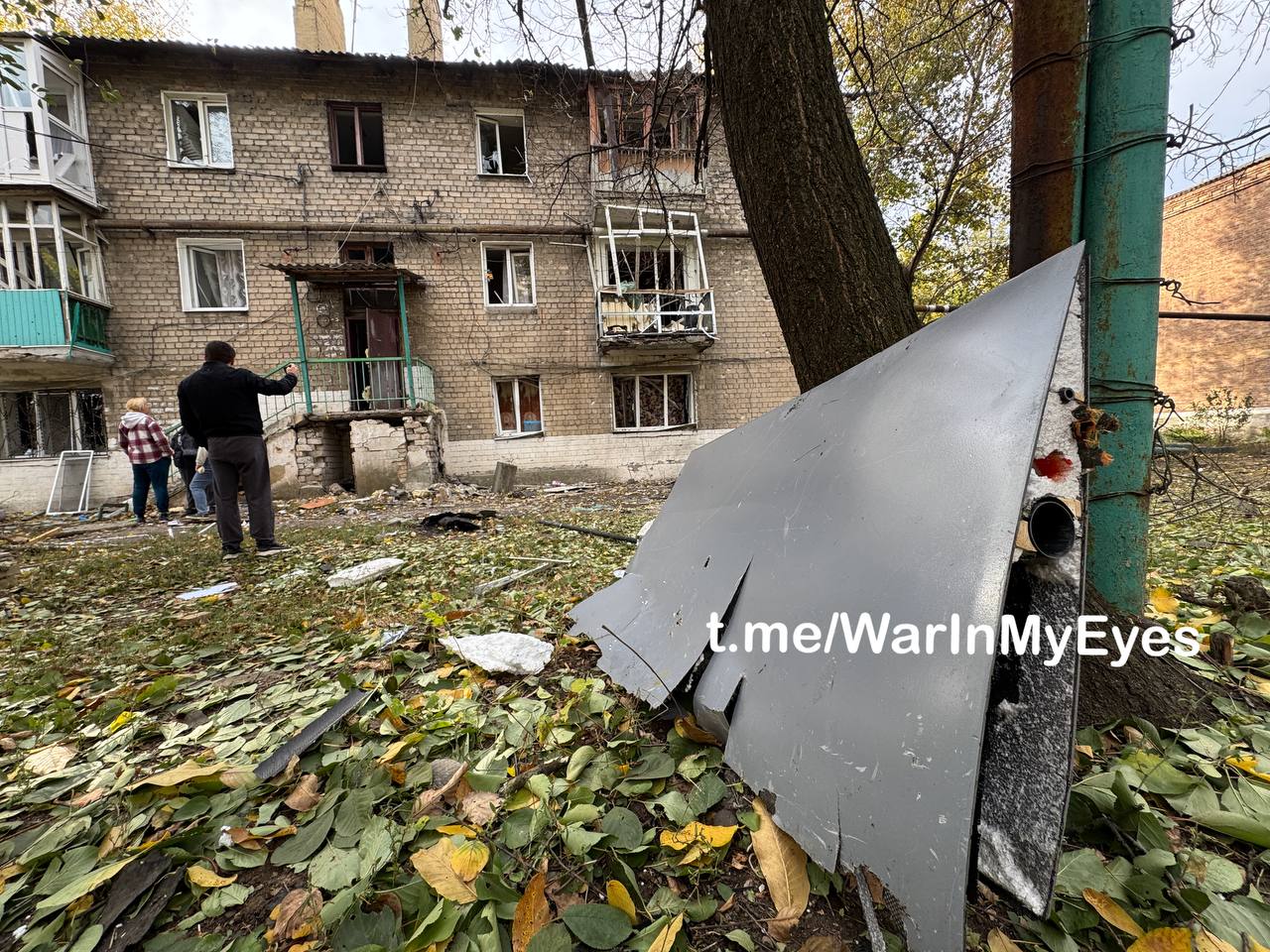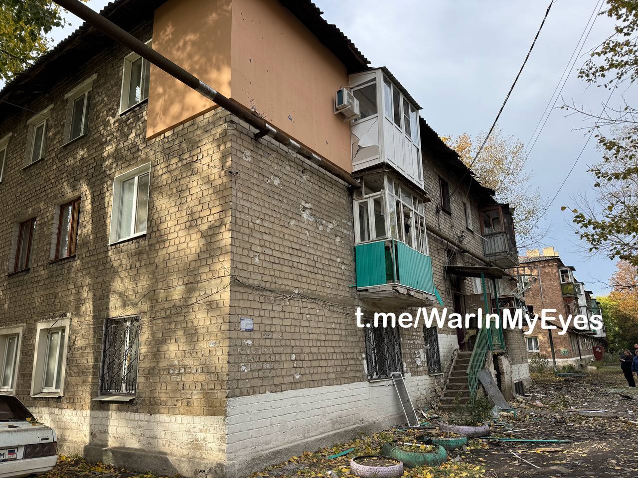 Последствия налета ударных БПЛА ( предварительно «Лютый») по микрорайону Абакумова в Кировском районе Донецка вчера вечером