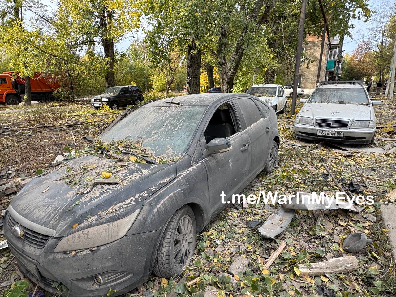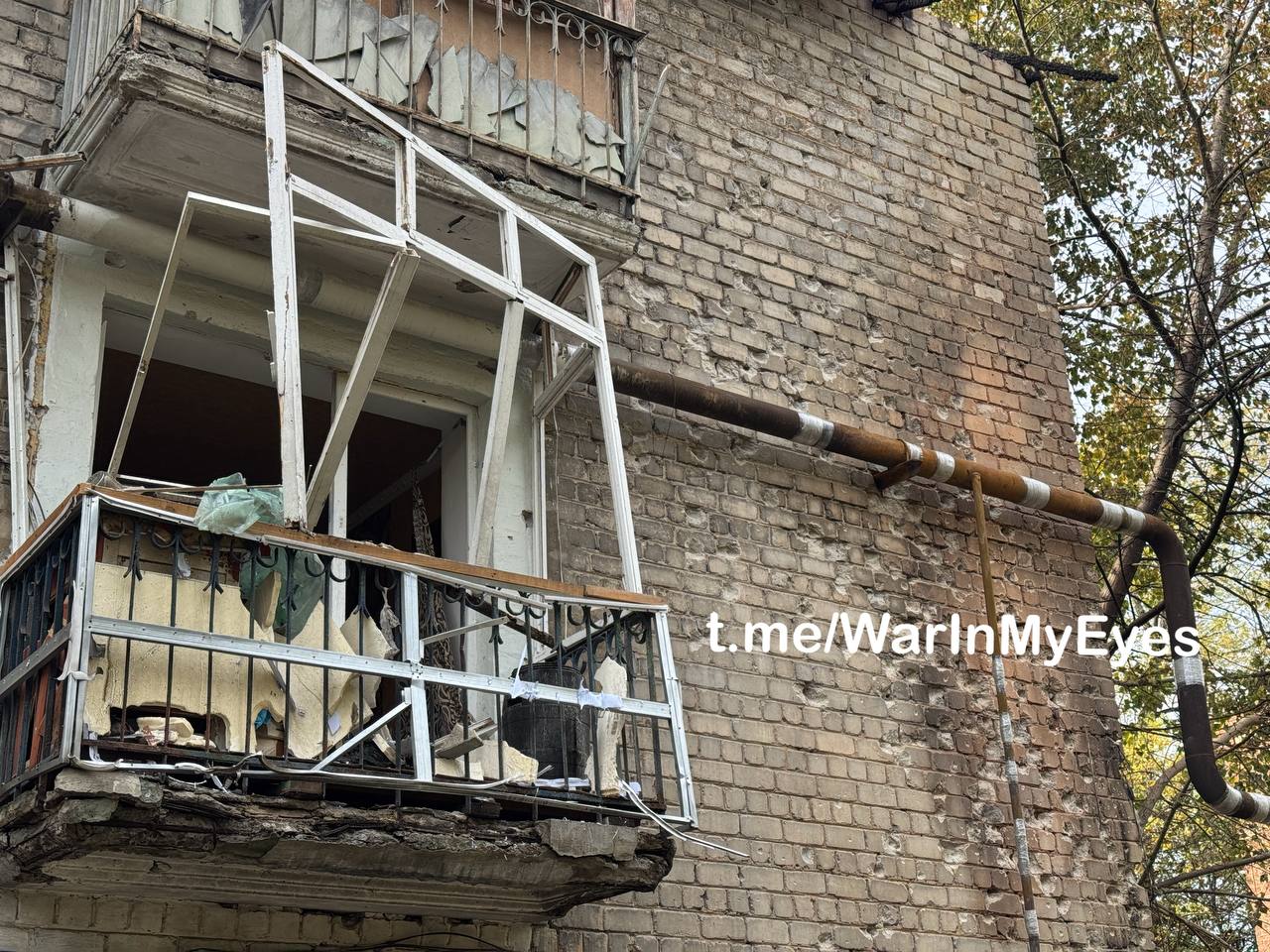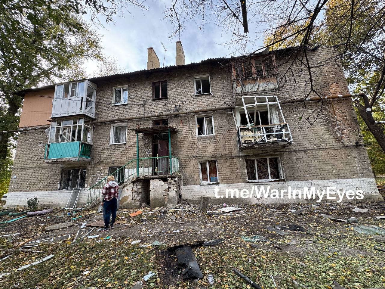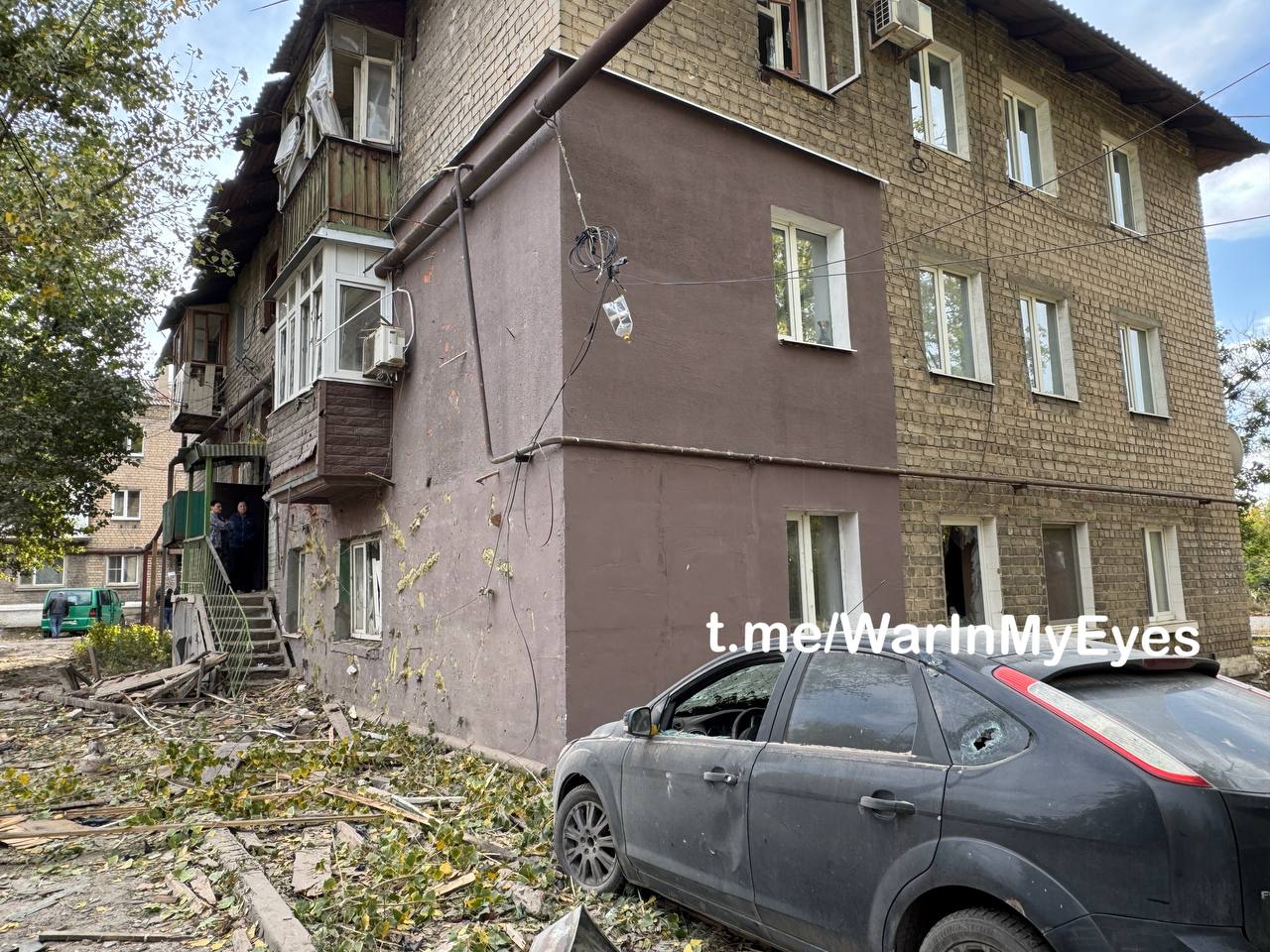 Последствия налета ударных БПЛА ( предварительно «Лютый») по микрорайону Абакумова в Кировском районе Донецка вчера вечером